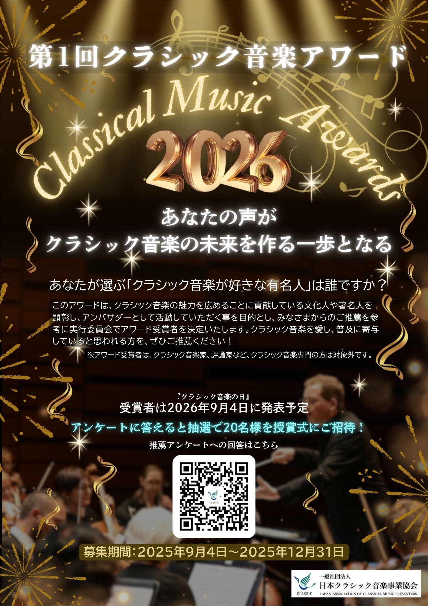 受賞者は2026年9月4日《クラシック音楽の日》に発表予定