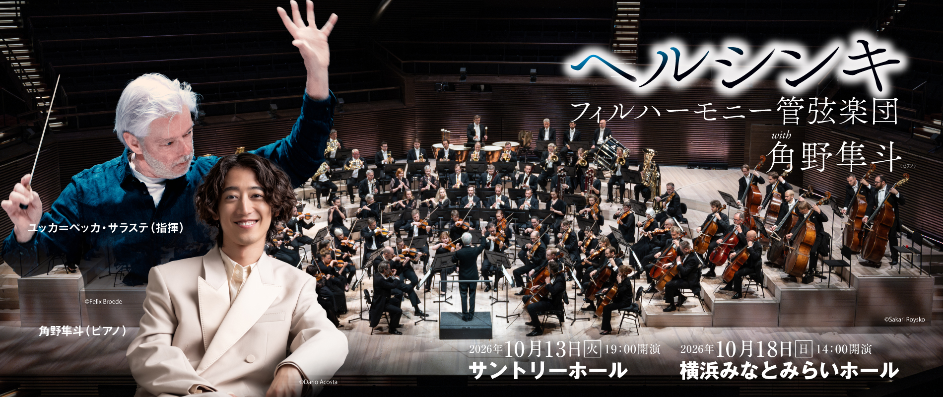 2026年2月1日公演情報OkeieNatsumi【公演情報】ヘルシンキ・フィルハーモニー管弦楽団 with 角野隼斗2026年10月「ヘルシンキ・フィルハーモニー管弦楽団 with 角野隼斗」の公演情報を公開しました。 シベリウス交響曲を初演。“真のシベリウス”を体現する北欧最古の名門、44年ぶりに来日! 深化を続けるピアニスト角野隼 […]